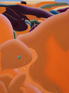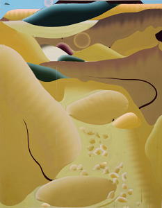 « Le soleil semble sourdre de la roche comme si la roche elle-même produisait sa propre lumière, sa propre chaleur. Cette chaleur fait vaciller la perception, les formes s’amollissent, la vision divague, la peinture devient par endroit des morceaux de chairs ou de corps et finalement c’est tout le paysage qui bascule dans cette ambiguïté. » (Idir Davaine).
